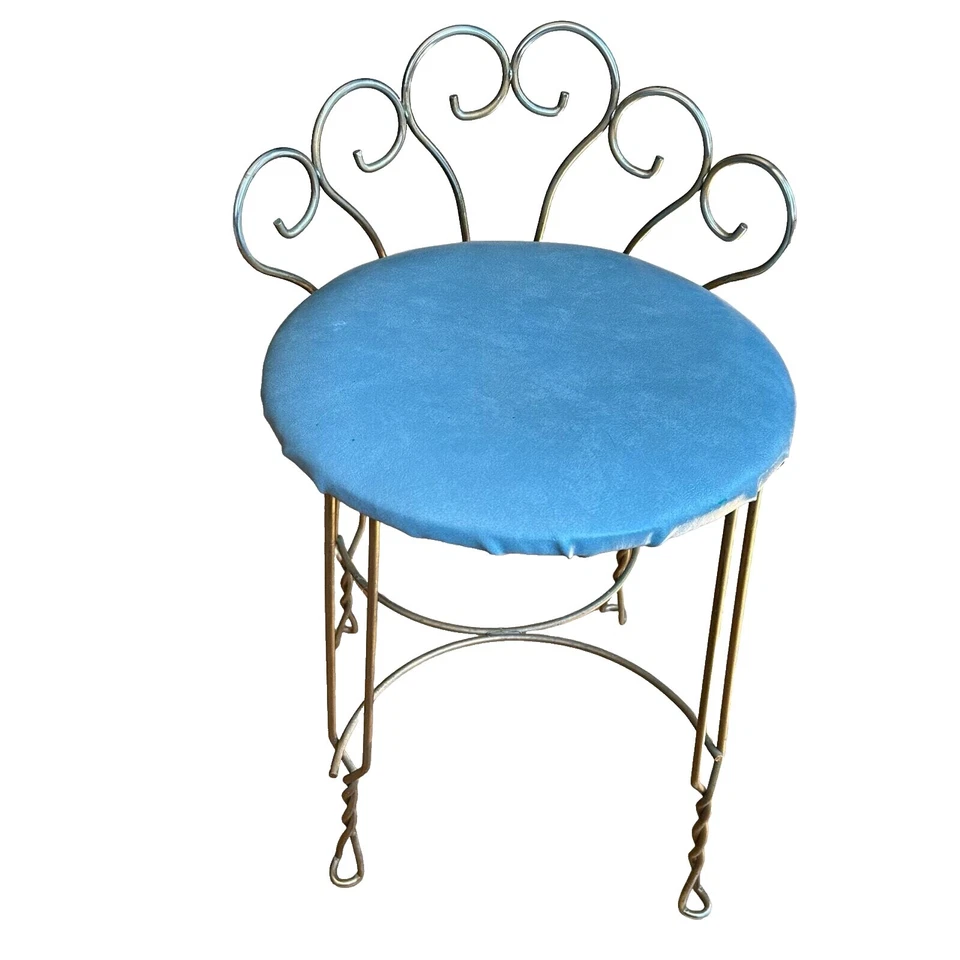 Anuncio nuevo"Banco de salón o dormitorio Hollywood Regency vintage dorado de hierro plano 36"" con"